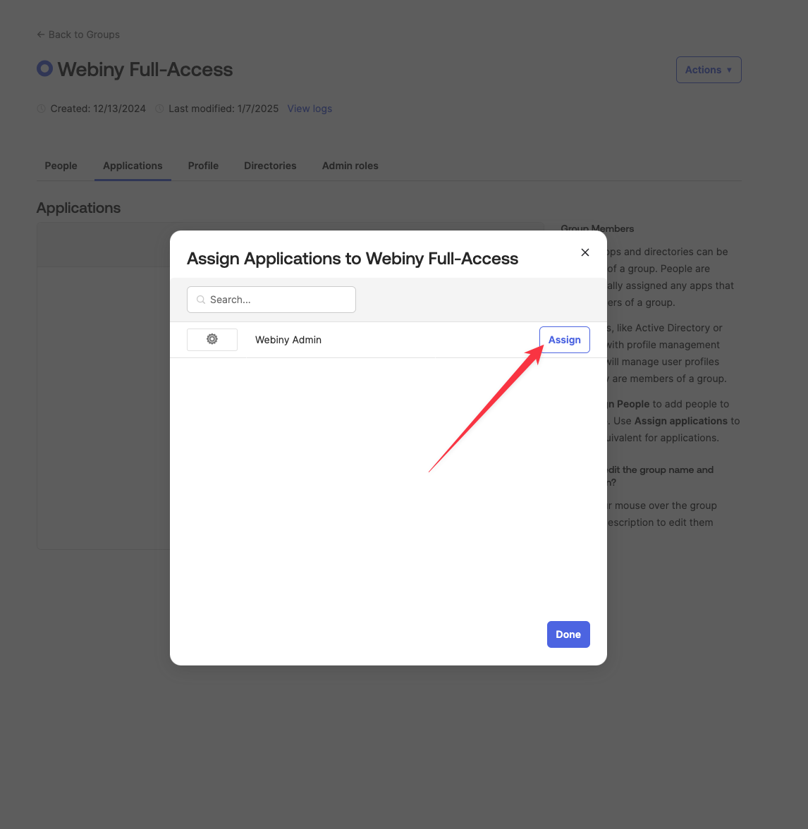 Find a group you want to assign to your app, and edit it (click the group name).